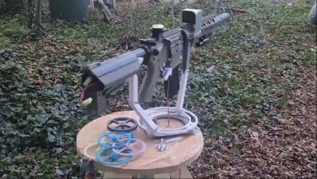 Tourelle automatique connectée composée d’un servomoteur pour définir l’angle de tire, et d’un second servomoteur pour appuyer sur la gachette.